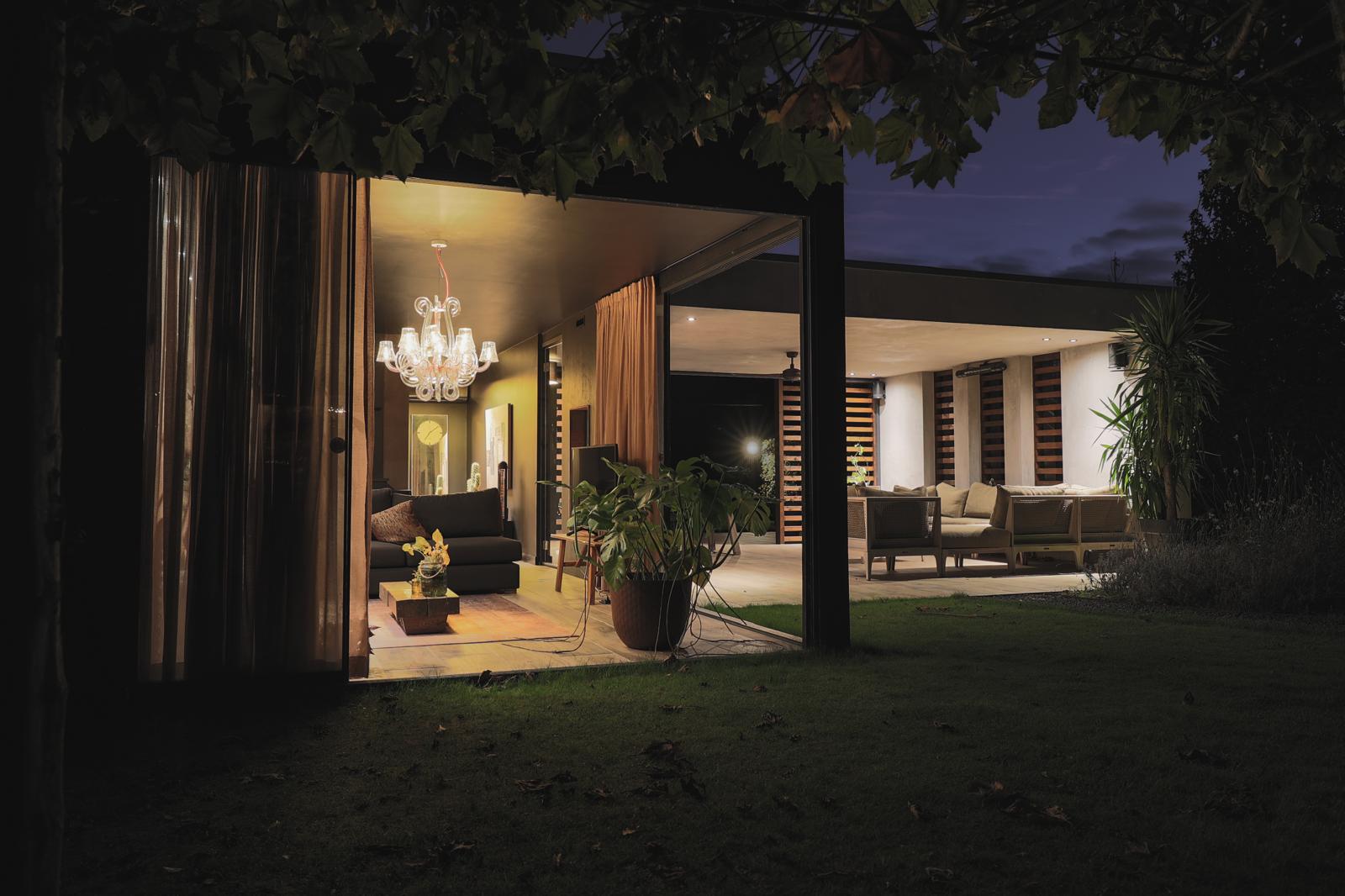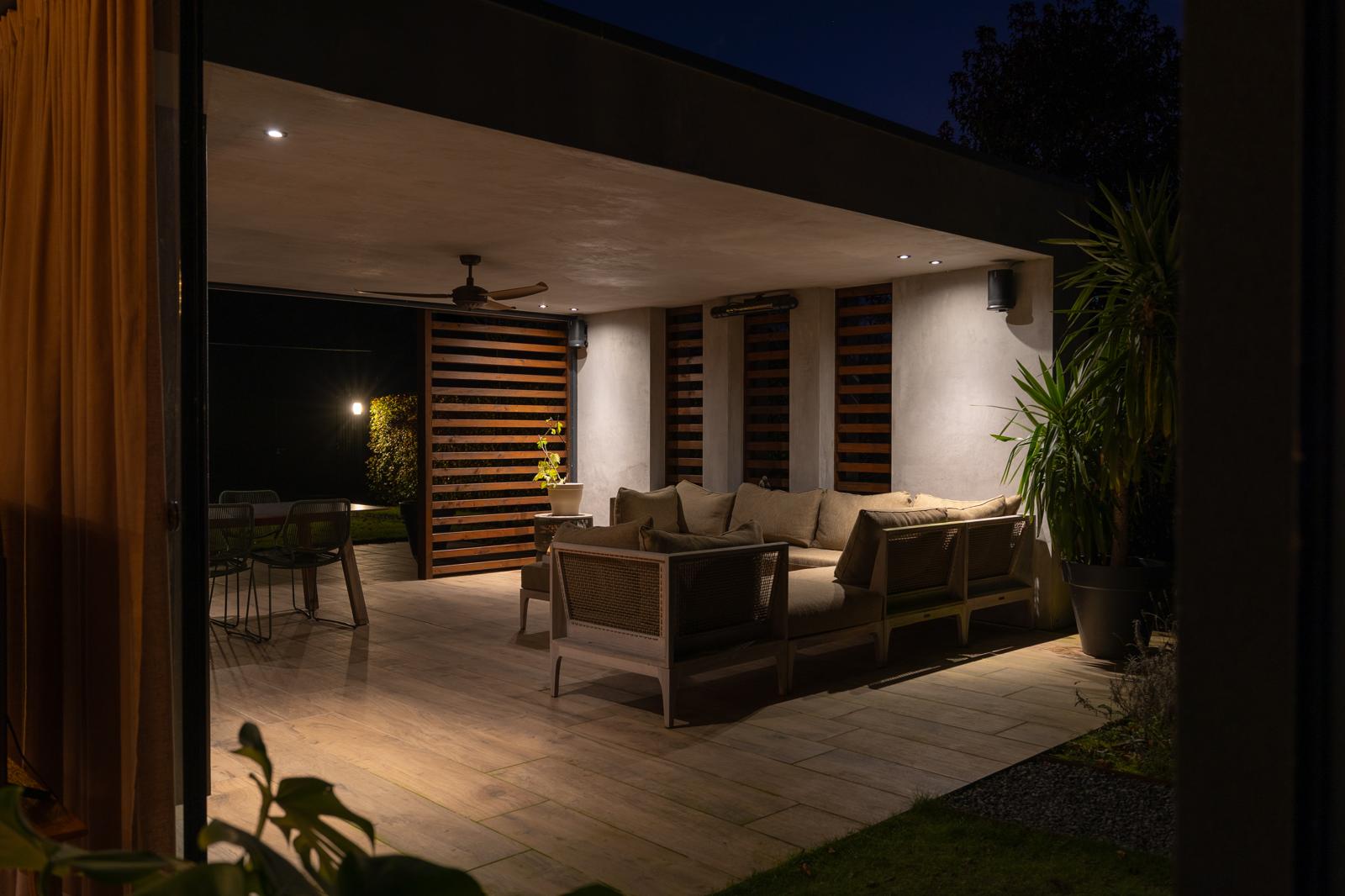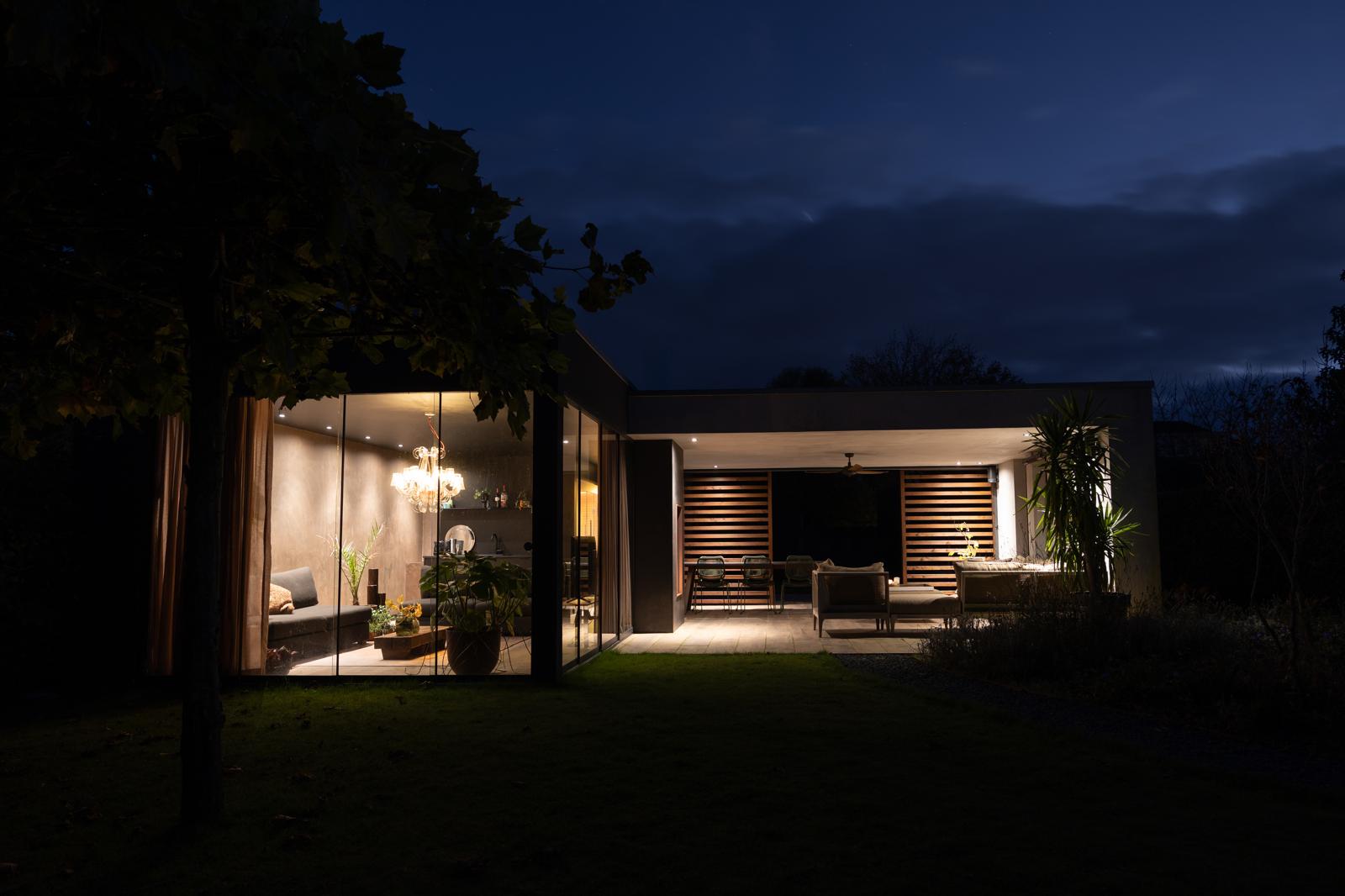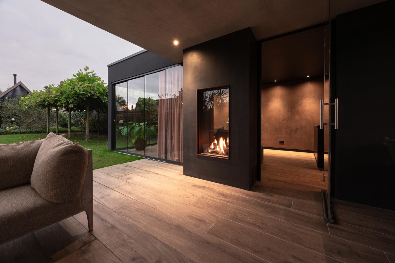 Dit buitenverblijf in Woudenberg is een oase van luxe en comfort, ontworpen om het beste van binnen en buiten te combineren. Het ruime buitenverblijf biedt zowel een buiten- als binnengedeelte, waarbij de naadloze overgang tussen de twee wordt versterkt door de doorlopende keramische vloer. Binnen vindt u een wellnessruimte met een sauna, wc, buitendouche en een moderne keuken, die samen een sfeer van ontspanning en functionaliteit creëren. De ingebouwde screens zorgen voor extra privacy en schaduw, terwijl de doorkijkhaard het hele jaar door warmte en sfeer biedt. Dit project weerspiegelt vakmanschap en design in zijn puurste vorm, met een perfecte balans tussen luxe en functionaliteit.